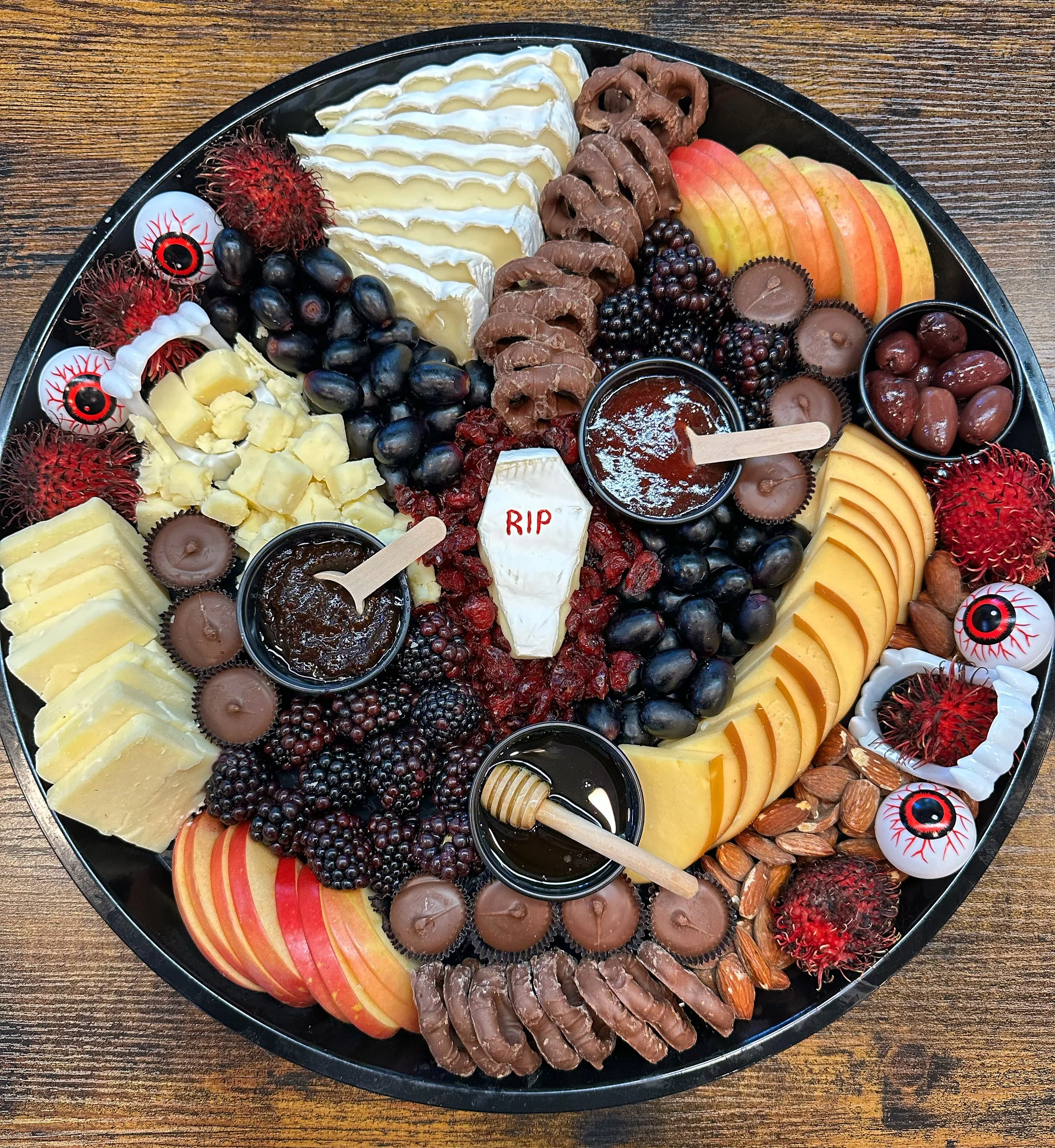 Halloween themed - please note this is board is an example, boards are made to order and will vary from image above. Will write “Happy Mother’s / Father’s Day” with cheese on medium + large boards. If you do not want that, please let me know. Any other special requests / add ons please include in the order form request.